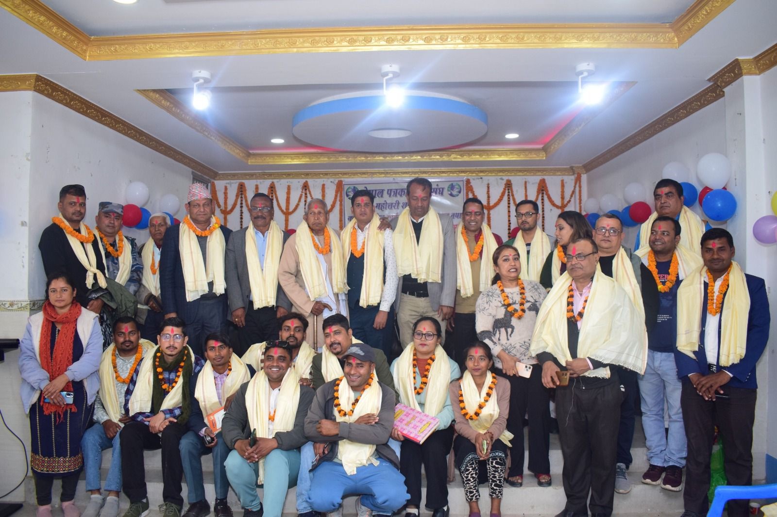 नेपाल पत्रकार महासंघ महोत्तरी शाखाको मिति २०८१ मंसिर २८ गते सम्पन्न निर्वाचन पश्चात पद तथा गोपिनियताको शपथ ग्रहण पश्चात सामूहिक तस्विरमा देखिएको दृश्य ।